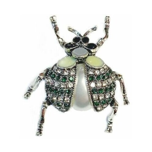 Брошь декоративная со стразами "Жук"/ 50х40мм/ металл
