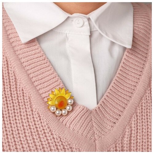 Брошь "Солнце" с жемчужинами, цвет бело-жёлтый в золоте, Queen fair