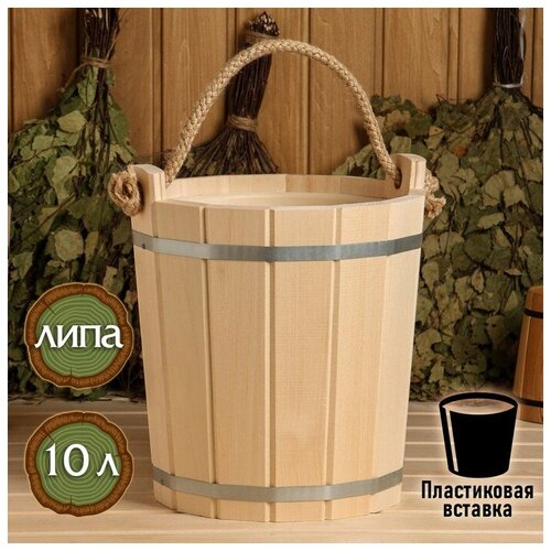 Запарник из липы, 10 л, пластиковая вставка, ручка-веревка