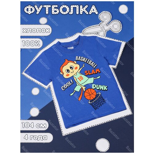 Футболка детская для мальчика спортивная хлопок 4 года 104 см, футболка на мальчика в садик хлопковая с рисунком животные, футболки для мальчиков