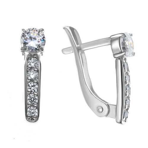 Серебряные серьги с бесцветными фианитами и золочением Б33812771