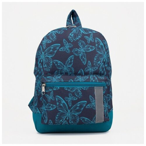 Рюкзак на молнии, наружный карман, светоотражающая полоса, цвет синий