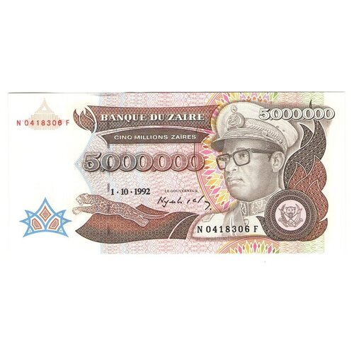 Банкнота номиналом 5.000.000 зайра 1992 года. Заир.