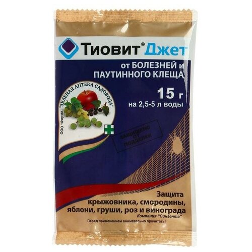 Средство для защиты растений от заболеваний и паутинного клеща Зеленая аптека садовода Тиовит джет, 15 г