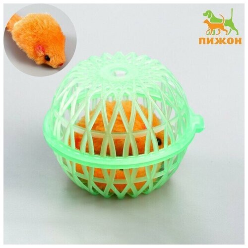 Мышь в пластиковом шаре, 7 х 5 см, зелёный шар/оранжевая мышь