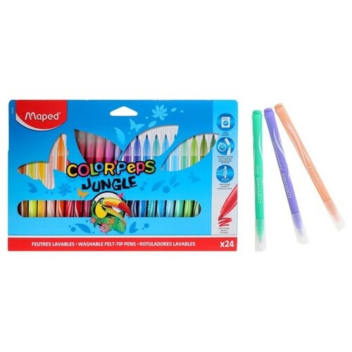 Фломастеры утолщенные 24 цвета, JUNGLE, смываемые