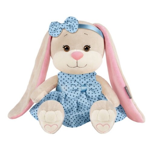 Мягкая игрушка Jack&Lin Зайка в голубом платьице в черный горошек, 20 см, разноцветный