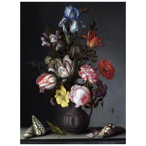 Репродукция на холсте Цветы в вазе и насекомые (Flowers in a Vase with Shells and Insects) Аст Бальтазар ван дер 30см. x 40см.