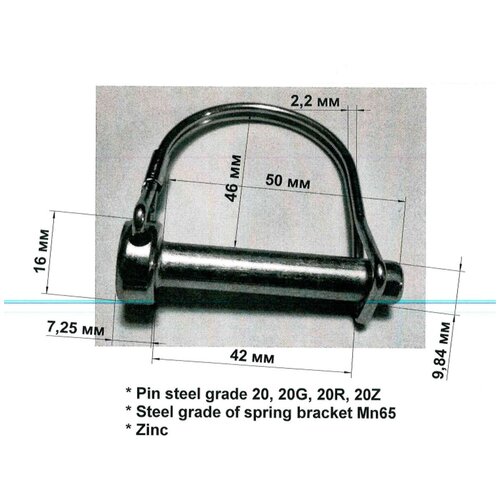 Стопорный шплинт 10*50(42) мм с пружинной скобой (2 шт в комплекте)