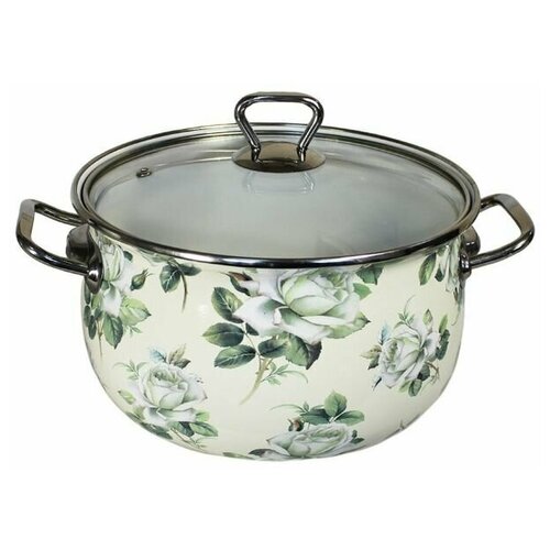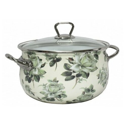 Кастрюля эмалированная Interos 2362 Белая роза 5,1 л