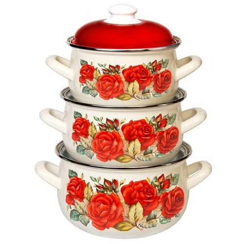 Розы Набор 3-х предметный/Набор кастрюль/Кастрюли/Набор посуды для приготовления 2,1л; 3,1л; 4,0л