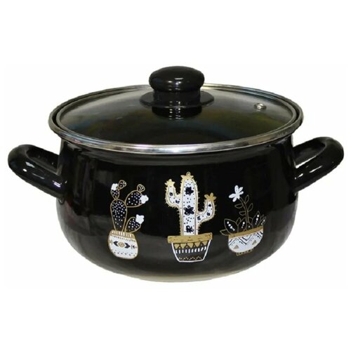 Кастрюля INTEROS 4015B Кактусы чёрные 5,1 л