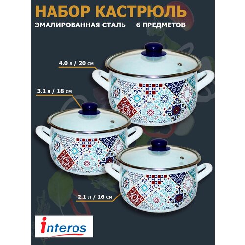 Набор эмалированных кастрюль INTEROS Марокко 2,1 л, 3,1 л, 4,0 л 6 Предметов посуда для индукции