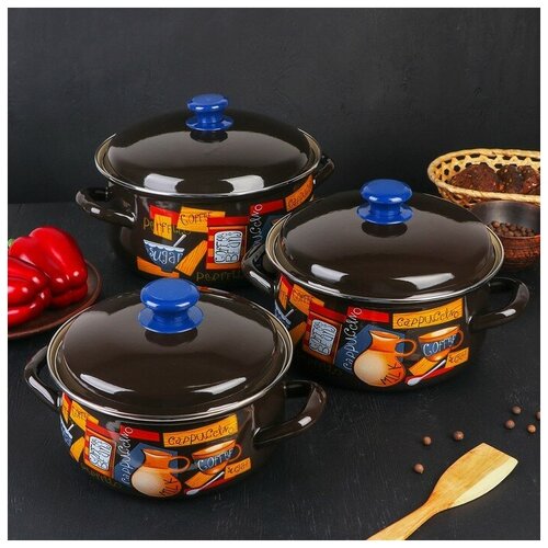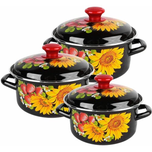 Набор кастрюль эмалированных с крышкой "Даша-1" 2л + 3л + 4л