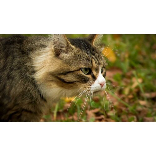 Картина на холсте 60x60 LinxOne "Котэ трава глаза" интерьер для дома / декор на стену / дизайн