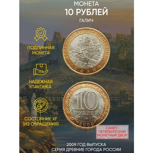 Памятная монета 10 рублей Галич. Древние города России. СПМД. Россия, 2009 г. в. XF (из обращения)