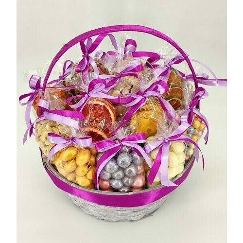 Подарочная корзина с орехами и сухофруктами (фиолетовая)