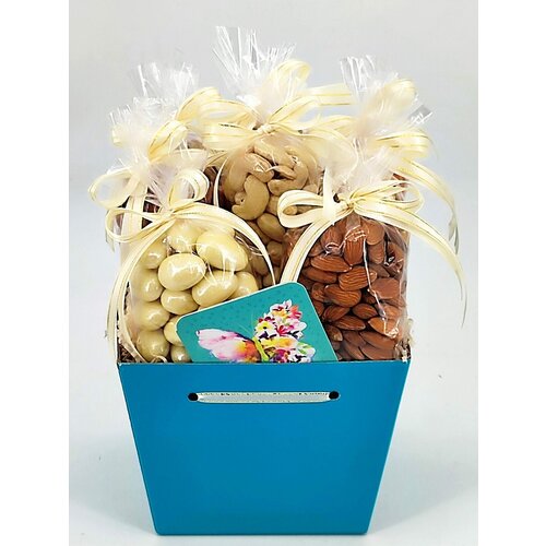 Подарочная корзина с орехами и сухофруктами в голубом цвете
