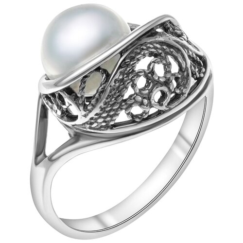 Серебряное кольцо с жемчугом оксидирование Красная Пресня Б2338516