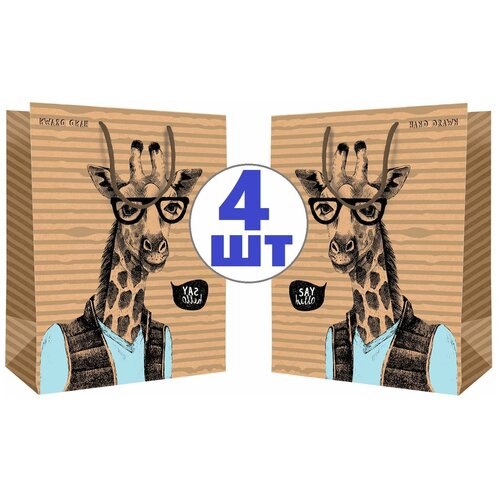 Пакет подарочный "Giraffe", размер 18*23*10 см, 4шт в упаковке