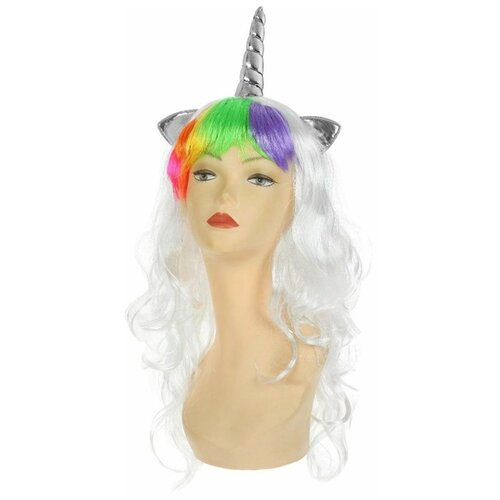 Карнавальный праздничный парик из искусственного волоса Страна Карнавалия женский/детский Длинные волосы с челкой, Единорог, белый