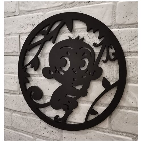 Панно/катрина/панно из дерева/декоративное пано/картина из дерева/в детскую/панно сувенир/обезьянка/черное