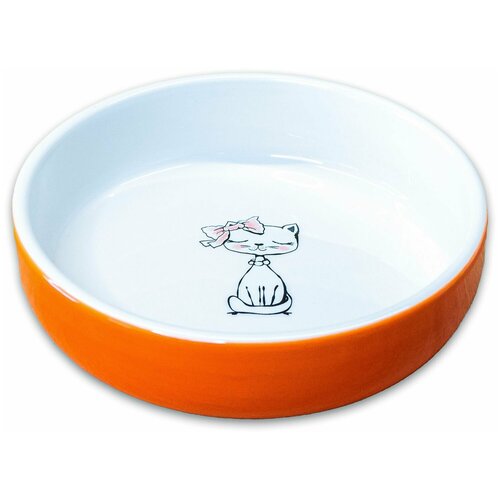 КерамикАрт 5060837 миска керамическая для кошек "кошка с бантиком" 370 мл, оранжевая шт