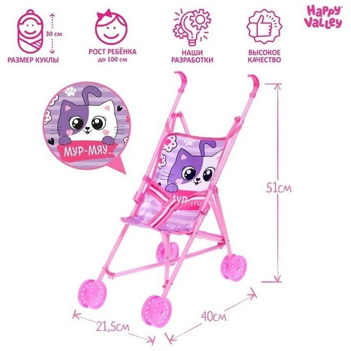 Коляска для кукол «Мур-мяу», трость, с рюкзачком