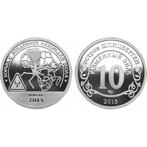 Разменный знак 10 2015 года. Остров Шпицберген. Борьба с эпидемией лихорадки Эбола.
