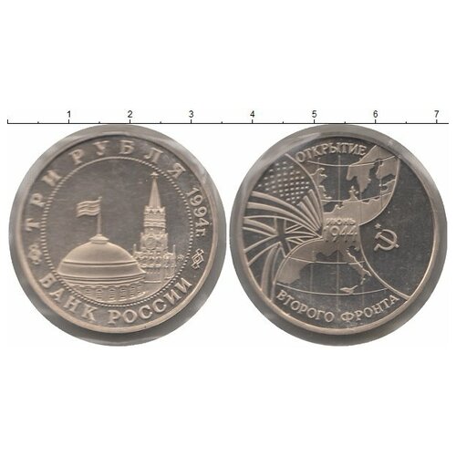 Клуб Нумизмат Монета 3 рубля России 1994 года Медно-никель Открытие второго фронта