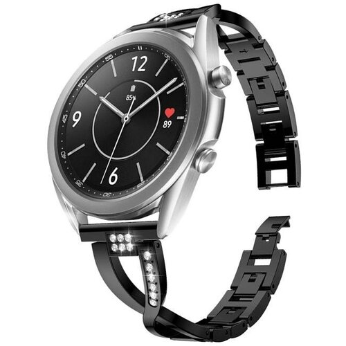 Металлический ремешок для часов 20 мм Samsung Galaxy Amazfit со стразами черный