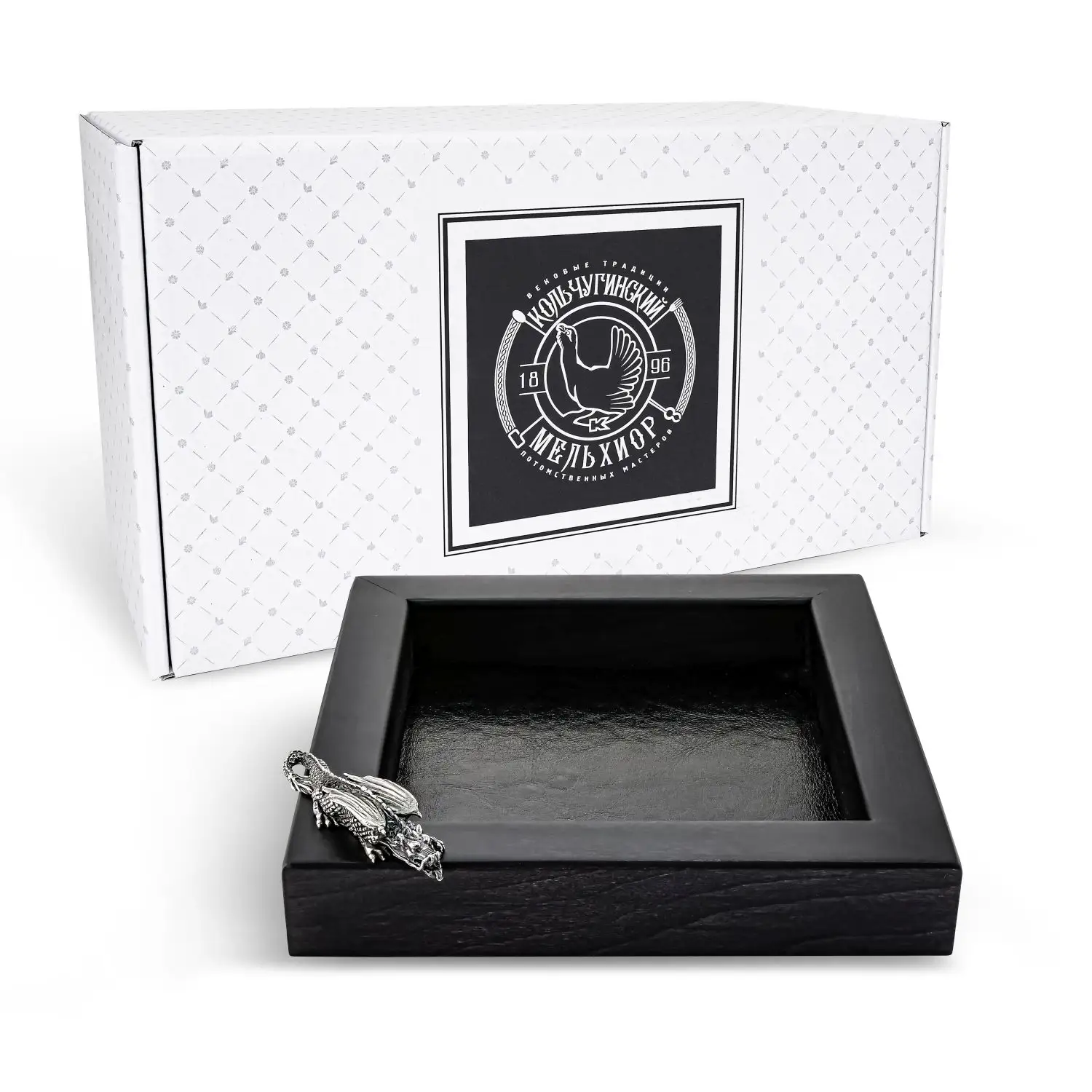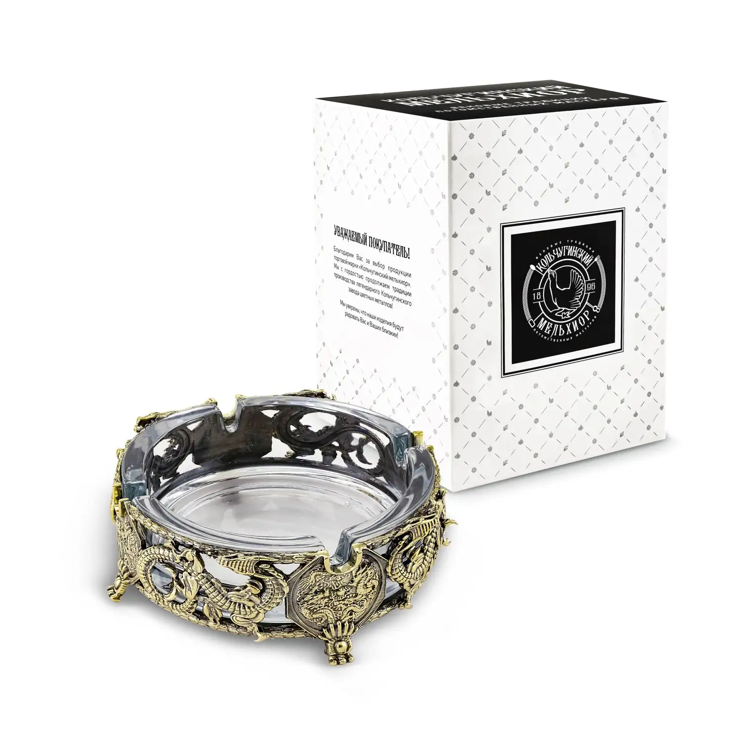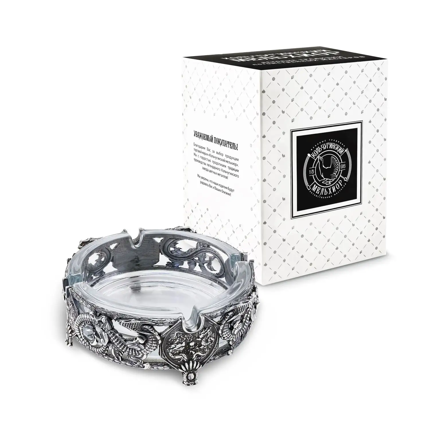 Пепельница Дракон посеребренная с чернением