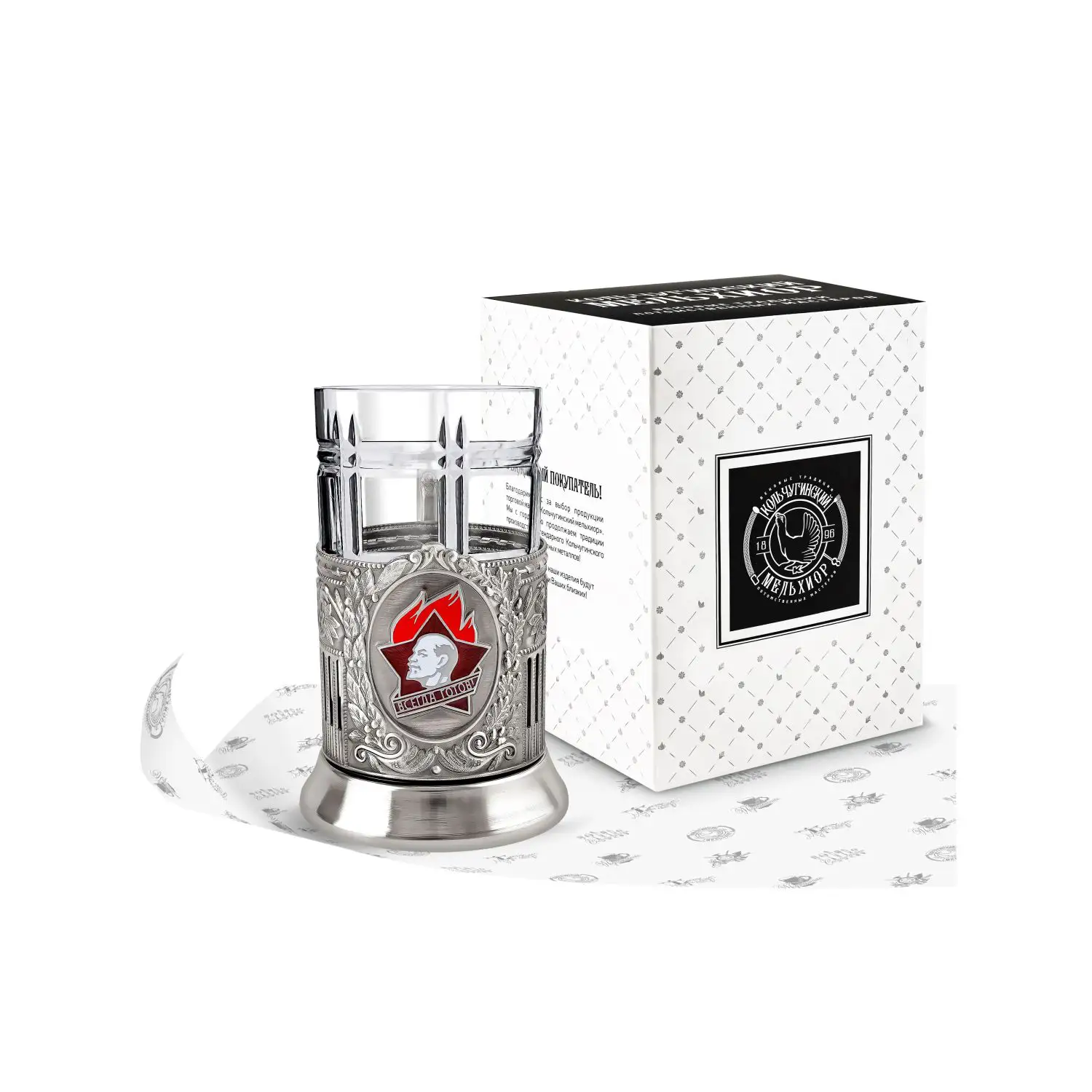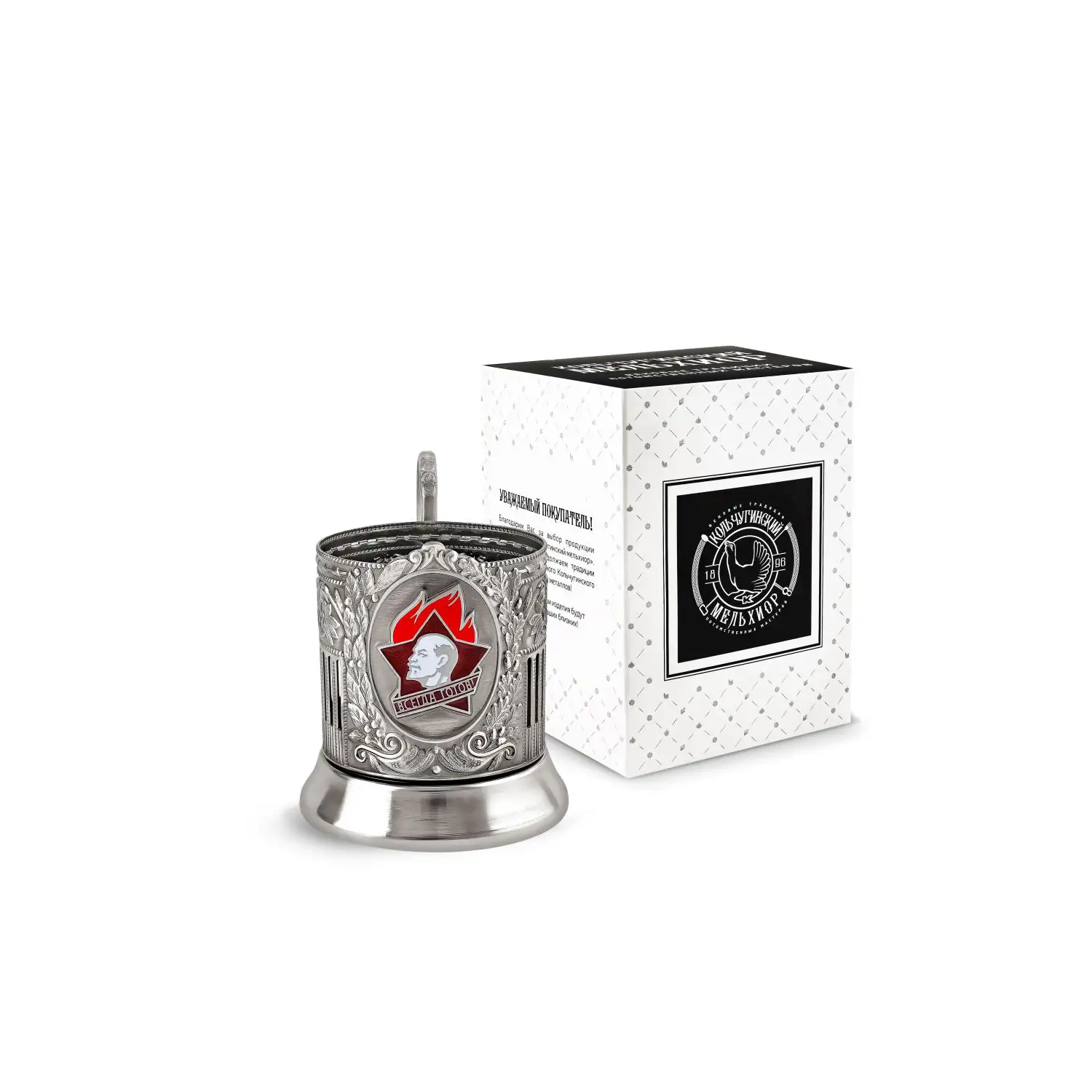 Подстаканник никелированный с чернением Будь готов! с эмалью