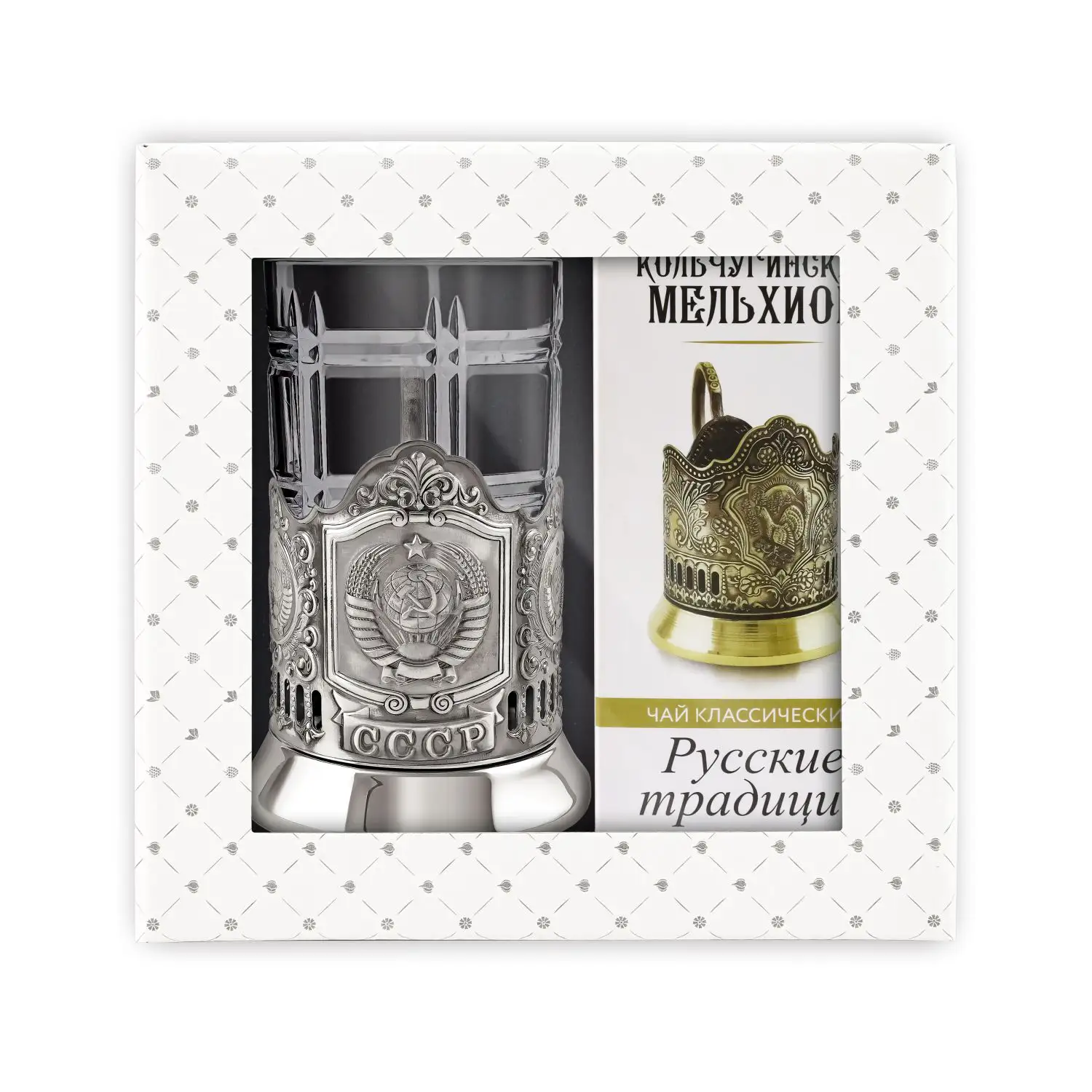 Набор для чая Герб СССР никелированный с чернением с чаем