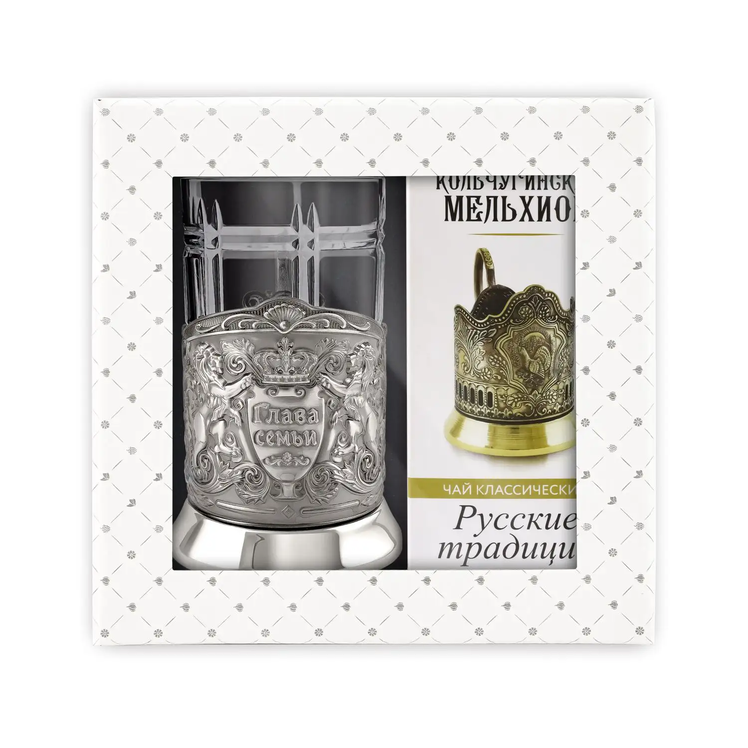 Набор для чая Глава семьи никелированный с чернением с чаем