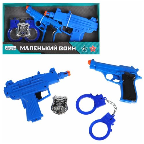 Игрушечное оружие детское ТМ компания друзей, Серия Маленький воин, Набор Полиция со звуком, на батарейках, игровой набор, игрушечный пистолет, игрушечные наручники, игрушечный жетон, набор для игры в полицейского, для детей, для мальчиков, синий, в/к 38*4,5*20,5 см