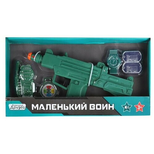 Игрушечное оружие детское ТМ компания друзей, Серия Маленький воин, Набор Полиция со звуком, на батарейках, игровой набор, игрушечный автомат, игрушечная рация, набор для игры в полицейского, для детей, для мальчиков, зеленый, в/к 38*4,5*20,5 см