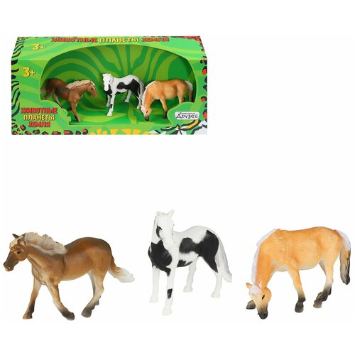 Игровой набор детский Домашние животные ТМ КОМПАНИЯ ДРУЗЕЙ, серия Животные планеты Земля, лошади, 3шт, в/к 38,5*10,5*17см