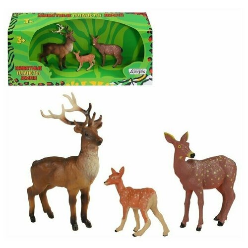 Игровой набор детский Дикие животные ТМ КОМПАНИЯ ДРУЗЕЙ, серия Животные планеты Земля, олень, 3шт, в/к 38,5*10,5*17см
