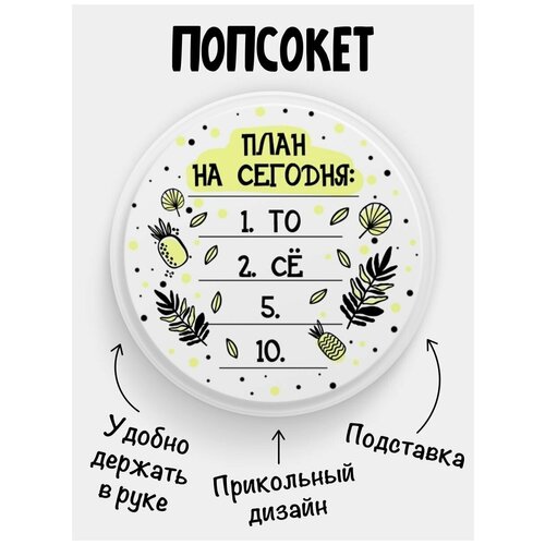 Держатель для телефона белый цвет "Попсокет" с надписью План на сегодня: 1. то, 2. се, 5. 10. Сувенир с рисунком из акрила на подарок