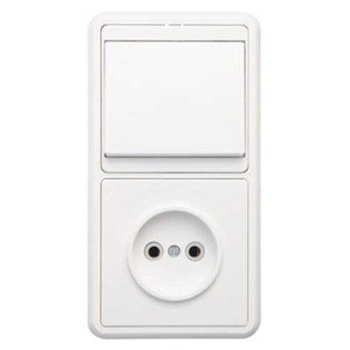 Блок комбинированный Кунцево-Электро Оптима, одноклавишный выключатель + розетка с заземлением, белый