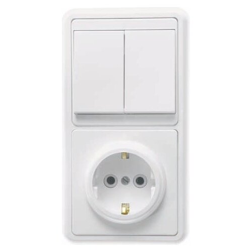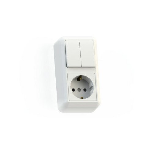 Блок комбинированный Кунцево-Электро Оптима, двухклавишный выключатель + розетка с заземлением, белый