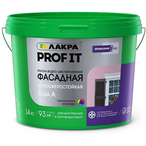Краска акриловая фасадная лакра Prof It база А 14кг белая