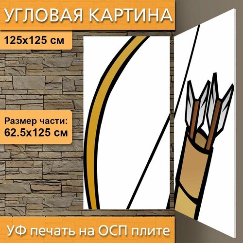 Угловая модульная картина "Стрельба из лука, стрела, поклон" для интерьера на ОСП плите, 125х125 см.