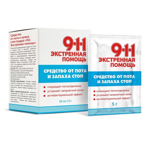911 Экстренная помощь Средство от пота и запаха стоп, 5 г 10 шт