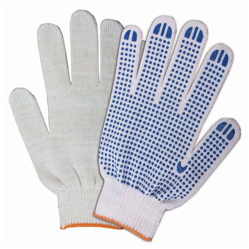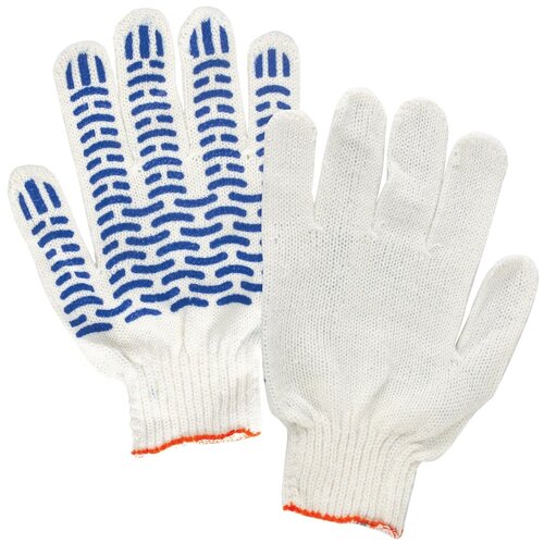 Перчатки хлопчатобумажные эконом, комплект 100 пар, 10 класс, 26-28 г, 83 текс, С ПВХ, LAIMA эконом, белые, 608680