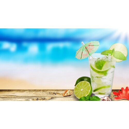 Постер на экокоже 60x80 LinxOne "Мохито ракушки зонтик лайм" интерьер для дома / декор на стену / дизайн