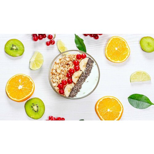 Постер на экокоже 30x30 LinxOne "Лайм Завтрак Мюсли Апельсин" интерьер для дома / декор на стену / дизайн