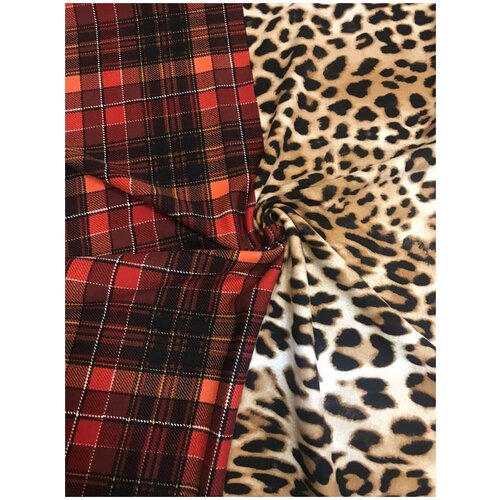 Ткань Трикотаж "Леопард с клеткой". Купон. Италия. Ширина 150*113 см
