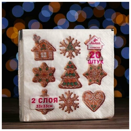 Новогодние салфетки бумажные Лилия 33х33 "Пряники" 2сл 20л.